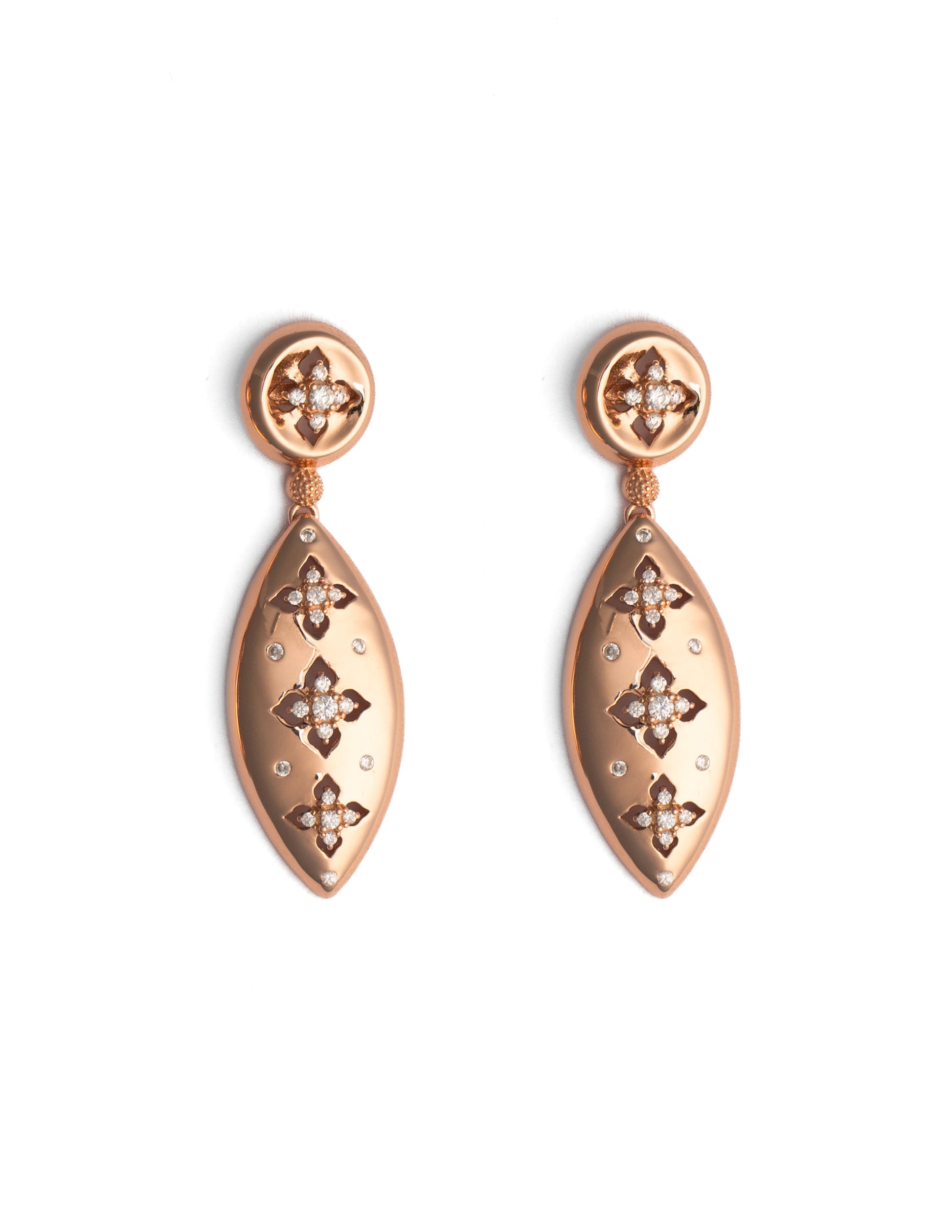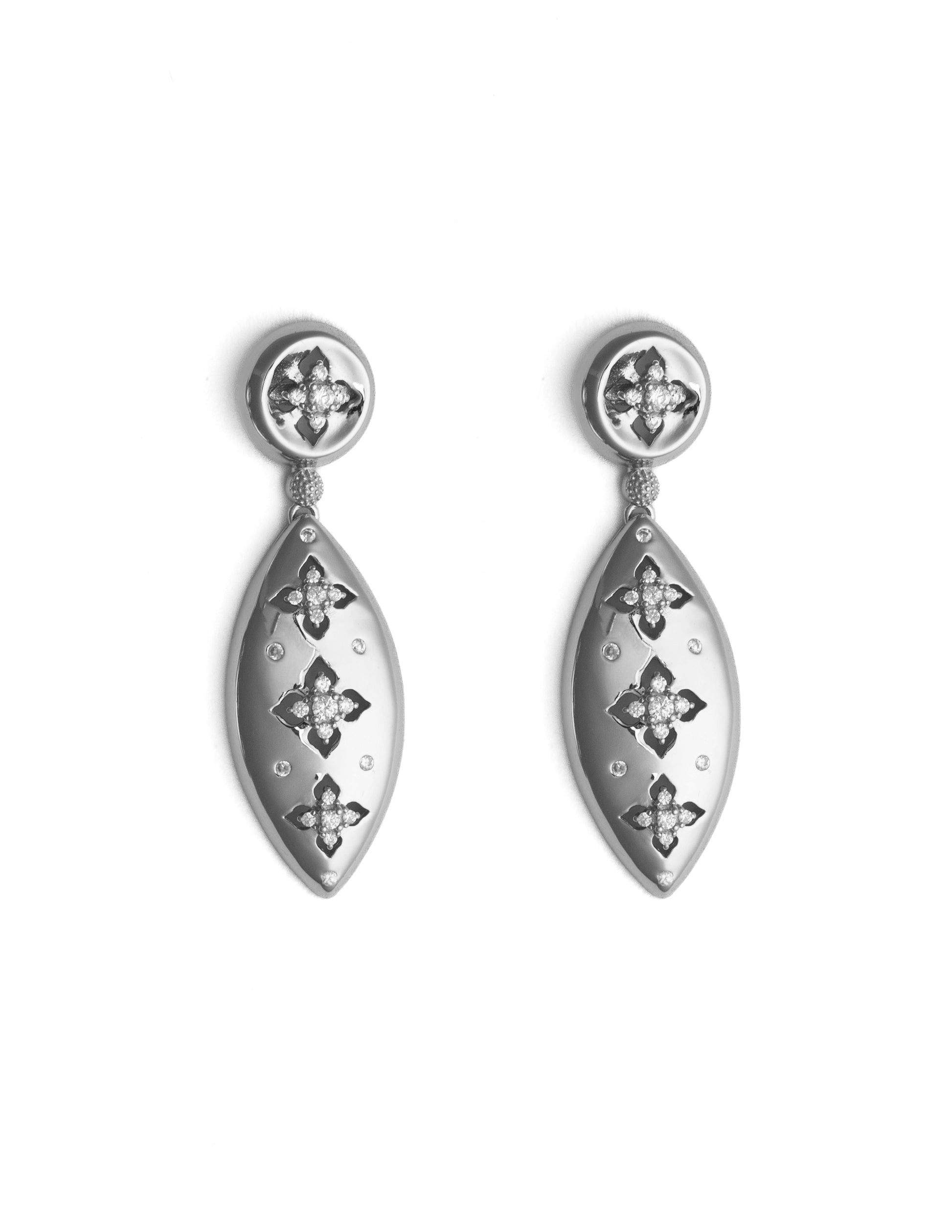 A celestial-inspired dangle with star-shaped cutouts and fine pavé detailing. A minimal, modern interpretation of holiday night skies