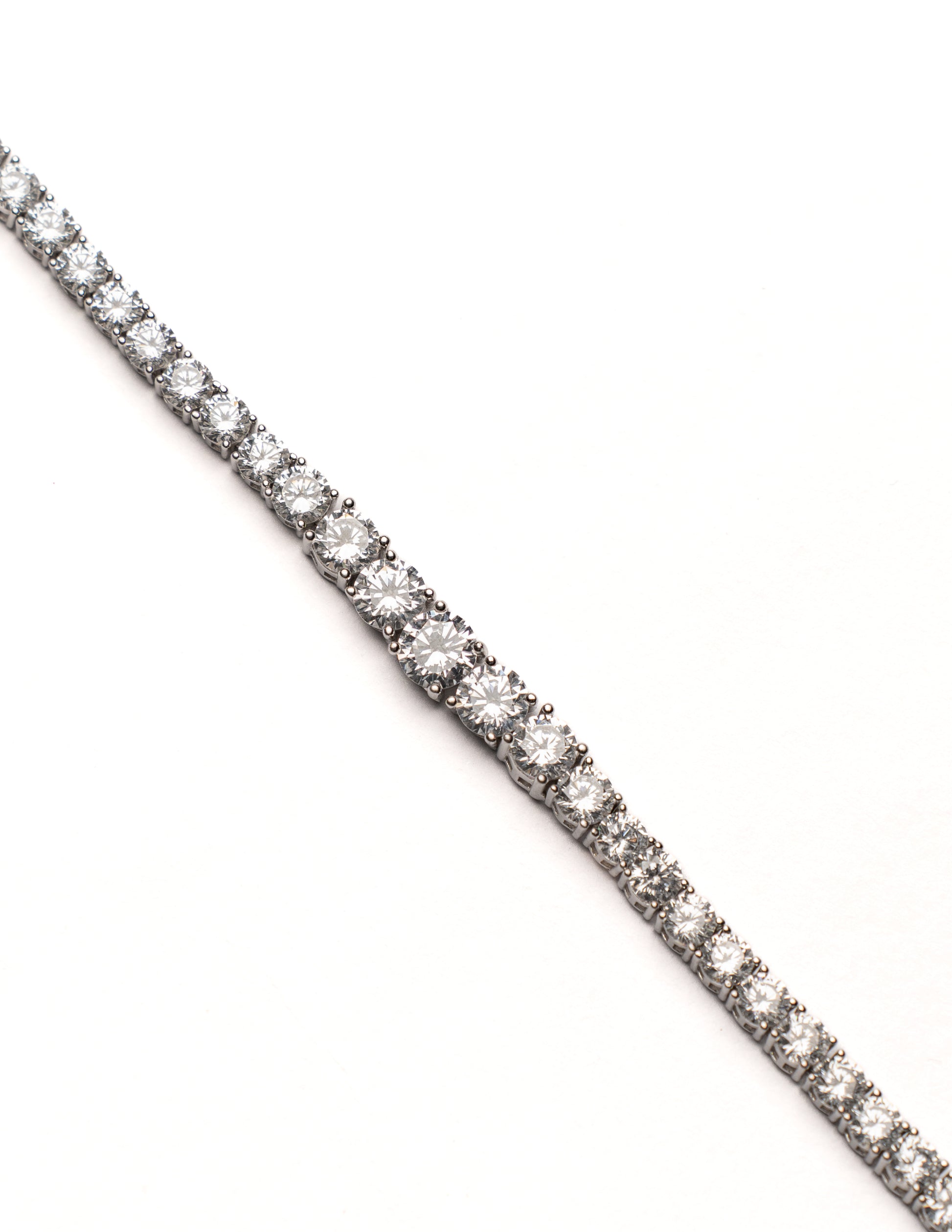 Alternating stones that shimmer under dim lights. Delicate, refined, effortlessly elegant. Silver with cubic zirconia.